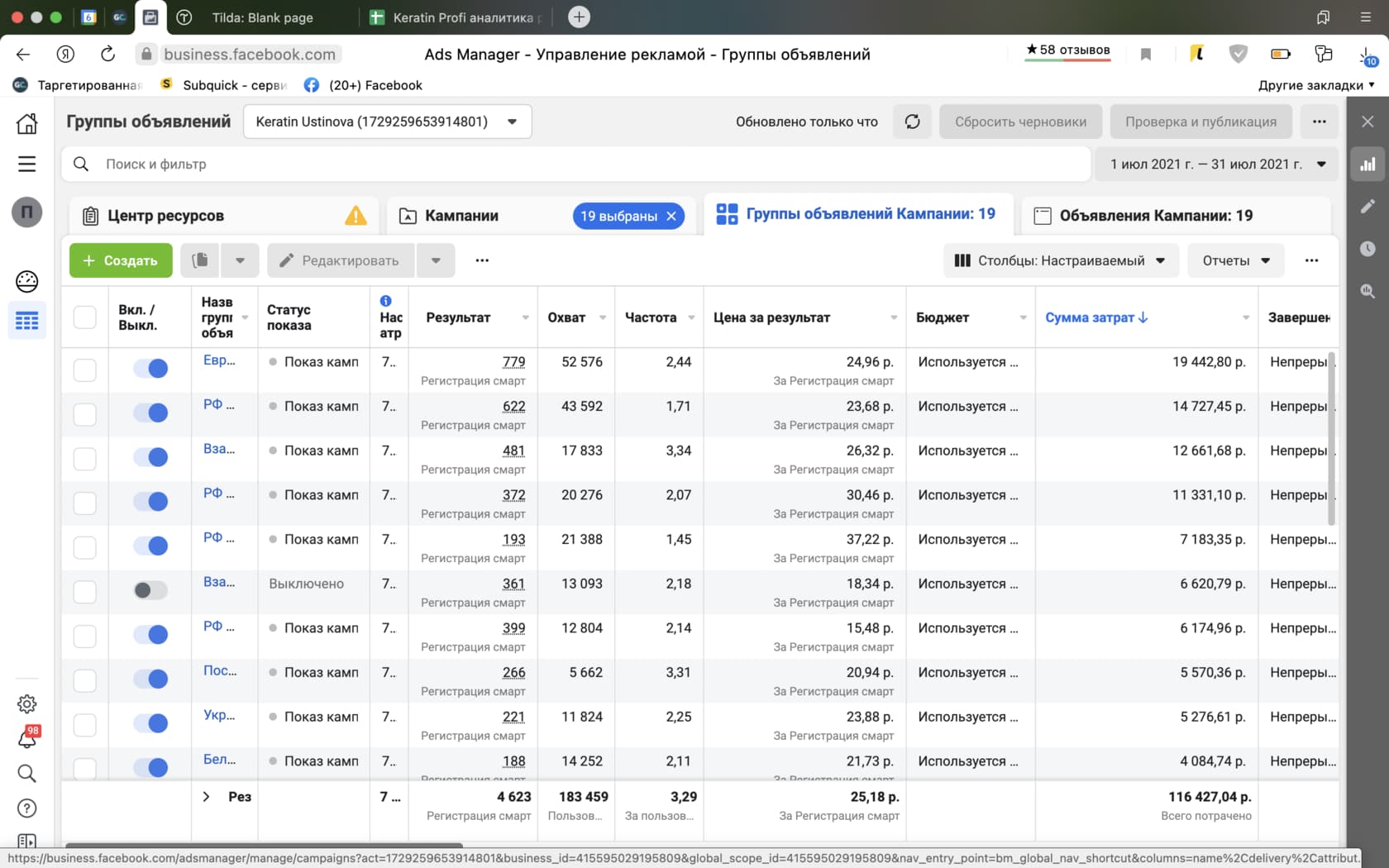 At the initial stage, we created test ad layouts, focusing on the key advantages of online courses: accessibility, practical benefits, and the ability to learn from anywhere in the world. We developed two types of audiences: broad (to reach the maximum number of users) and narrow (focused on beauty-related interests). This allowed us to identify a more interested and solvent audience.